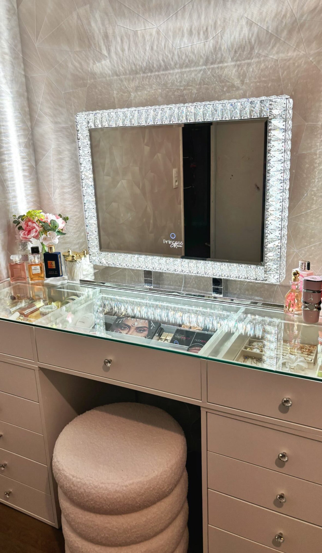 Une véritable pièce maîtresse royale. Avec ses tiroirs spacieux, ses finitions luxueuses et ses lignes élégantes, la Princess Vanity n’est pas qu’un meuble — c’est votre trône de beauté personnel. ✨🎀
