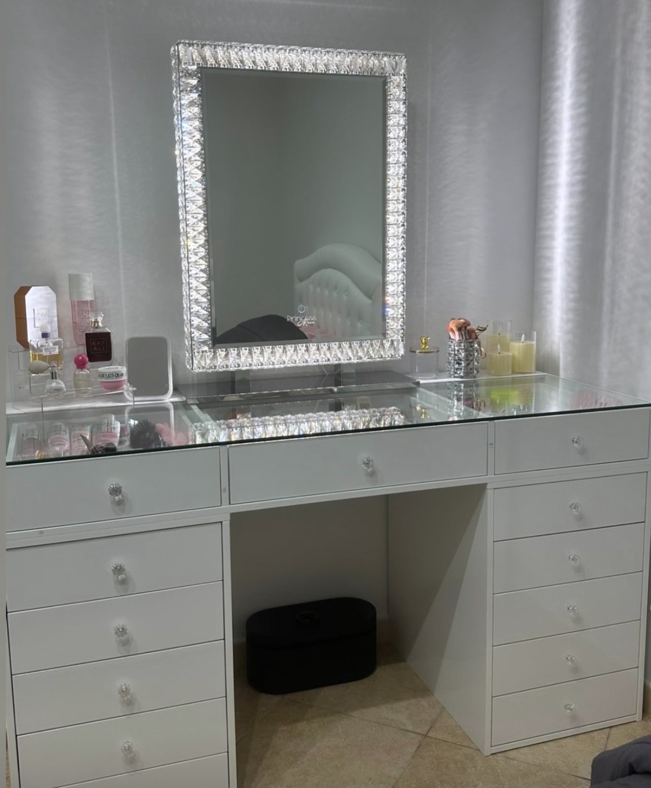 Découvrez une coiffeuse élégante, conçue pour sublimer vos moments de self-care. Éclairage parfait, design raffiné — tout ce qu’il vous faut pour vous sentir confiante chaque jour.