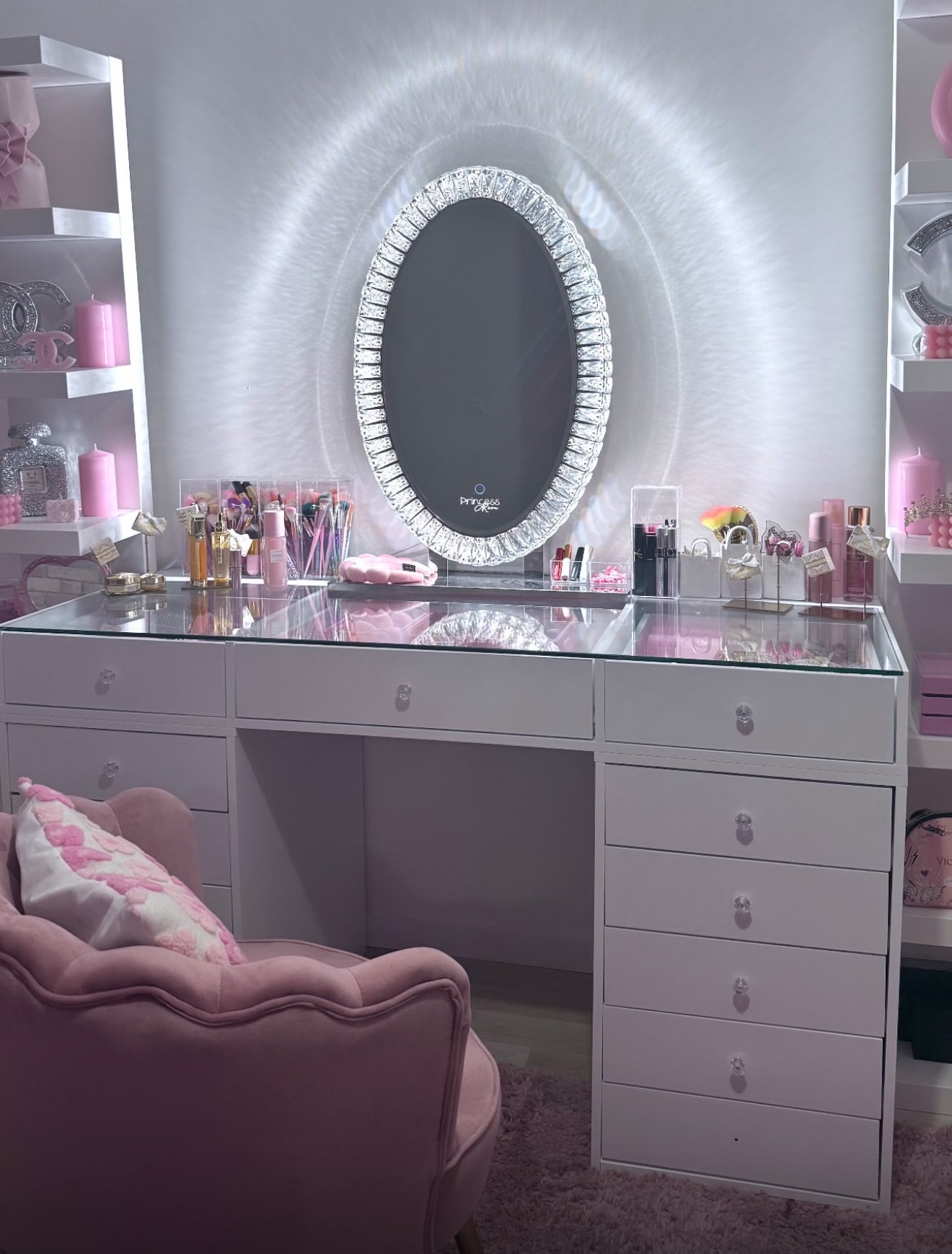 Une véritable pièce maîtresse royale. Avec ses tiroirs spacieux, ses finitions luxueuses et ses lignes élégantes, la Princess Vanity n’est pas qu’un meuble — c’est votre trône de beauté personnel. ✨🎀
