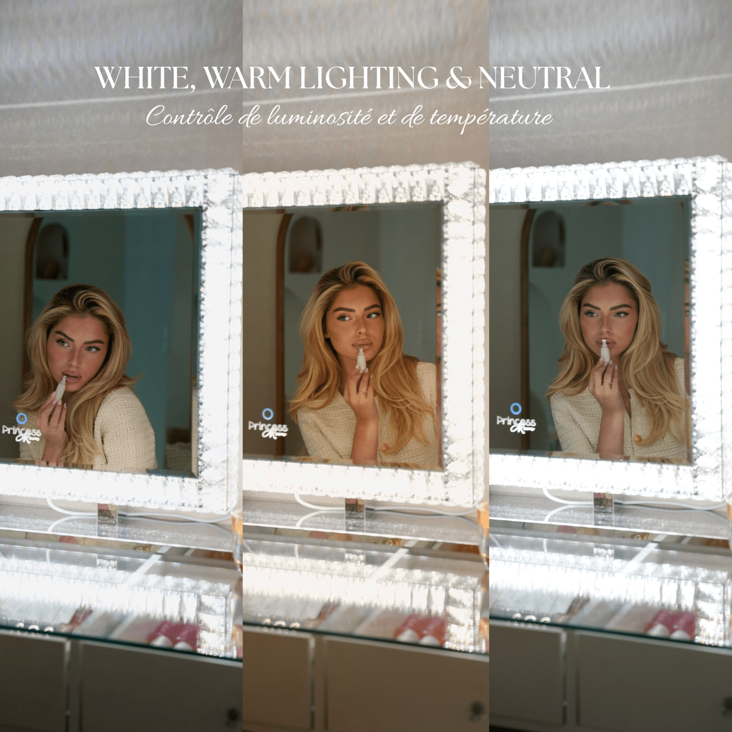 Transformez votre coiffeuse en un véritable sanctuaire de beauté avec le Stargirl Mirror — un miroir LED haut de gamme conçu pour les femmes en quête d’un parfait équilibre entre élégance, performance et éclairage impeccable au quotidien.